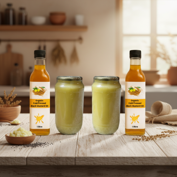 Buy 2 Litre A2 Gir Cow Bilona Ghee & Get 2 Litres Cold Pressed Black Mustard Oil FREE- Very High Nutritional Value Oil