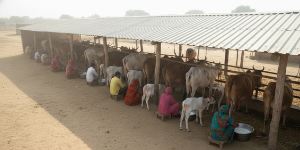 It starts from extracting milk from cow’s udder by hand, without using any machine. The process begins only after the calf has been fed by the Cow.