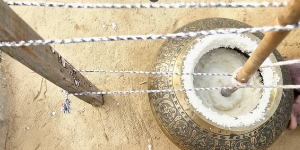The curd is hand-churned using a traditional wooden bilona, moved rhythmically back and forth for about 45 minutes.